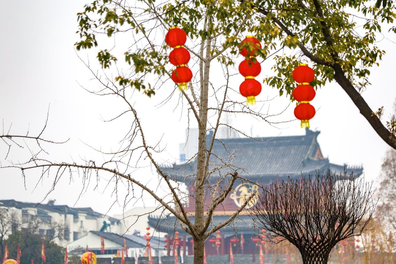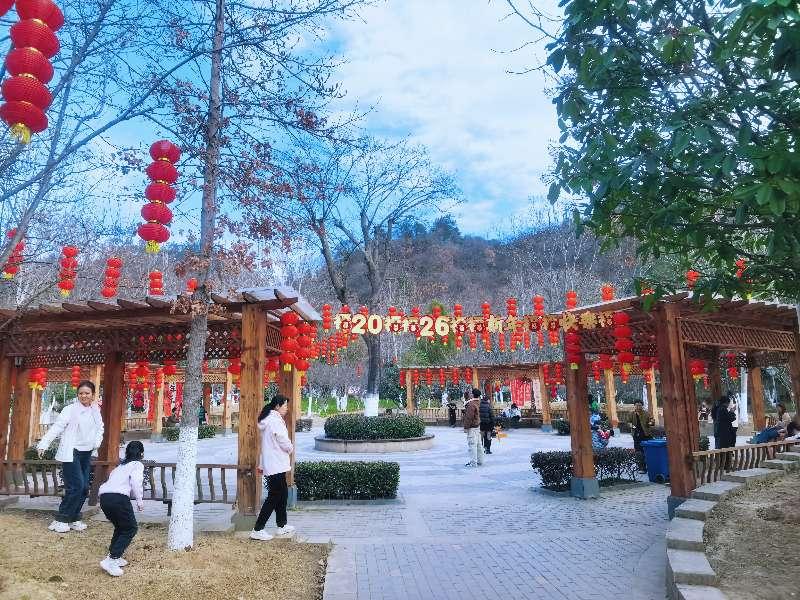 十堰市人民公园喜迎春节,园内挂满灯笼红旗