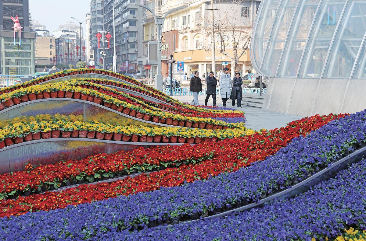 道路增花添景,烘托节日氛围。武汉园林绿化部门重点对沿江大道、东湖路、洪山路等50余条城市主干道,双湖桥、琴台转盘等20余处城市重要节点以及昙华林、江汉路步行街等30处花漾街区开展花卉更新工作,布置花卉约6万余平方米,在解放大道、洪山广场等重要节点试点摆放154株箱栽全冠梅花。在放鹰台、三阳路、武汉站周边等重点区域打造园林小景30处,实现节日氛围全域浓厚、处处洋溢。
