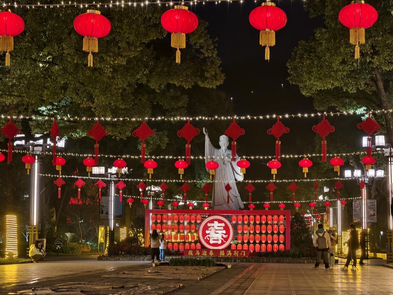 冬日里的荆州,街头巷尾涌动的“中国红”,带来了融融暖意。自春节环境提升行动启动以来,城管园林部门牵头在城区重点路段及区域实施亮化装饰,所有灯饰安装调试工作已于2月10日前全部完成。在屈原路、荆中路等市中心城区主干道,工人们将一盏盏亮化中国结悬挂于灯杆;黄金堂路、武德路等地,大红灯笼成排点缀;庄王大道、太岳路、江津西路两侧的行道树上,灯笼串如累累硕果,随风轻摆。