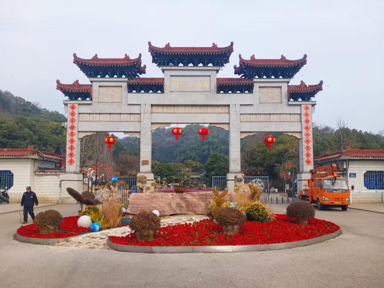 新春将至,黄石大地披上节日盛装,处处洋溢着喜庆祥和的年味。团城山公园门前,飞檐翘角的石牌坊缀满红灯,与花坛中盛放的红焰焰花卉交相辉映,勾勒出中式园林的新春雅韵。城市街头,“为人民服务” 的厚重标语旁,三色堇、报春花等时令花卉铺展成绚丽花海,红橙紫的色彩层次分明,将初心之地装点得生机盎然。园林工作者精心布景,让每一处街角都成为流动的风景。