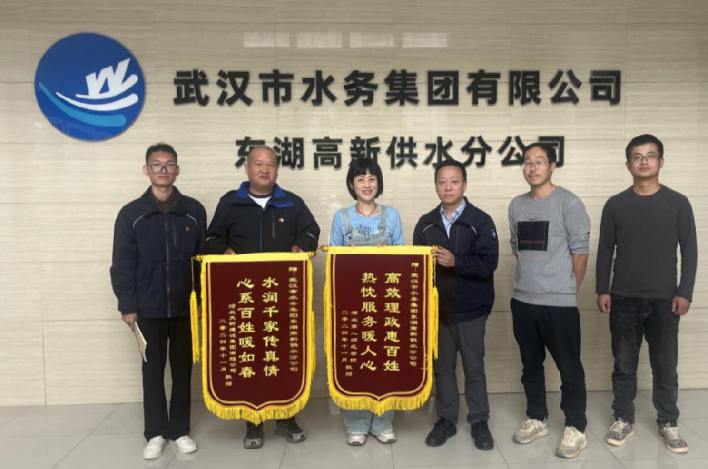 “本以为供水报装要很长时间办理,真没想到你们会这么简单就把我申请的报装事项办理完了,而且通水速度还这么快,给你们的服务点赞。”11月18日下午,武汉城投水务东湖高新分公司(以下简称“高新公司”)收到湖北第二师范学院总务处和河北天昕建设集团有限公司项目负责人送来的两面锦旗。赠送锦旗合影“心系百姓暖如春,水