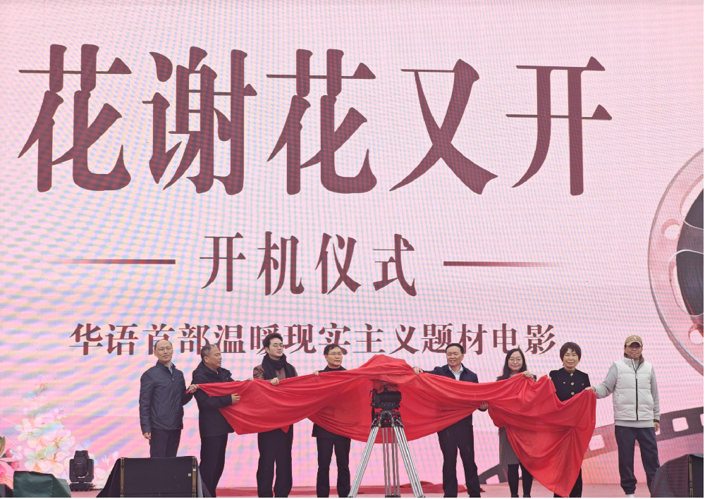 11月9日上午,由导演熙道执导的温暖现实主义题材电影《花谢花又开》开机仪式在武汉市蔡甸区花博汇举行。开机仪式现场,嘉宾与主创团队共同为摄像机揭红,标志着影片正式进入拍摄阶段。开机仪式上,影片总制片人、编剧兼导演熙道携主演及主创团队集体登台亮相并分享创作体会。熙道介绍,《花谢花又开》以“温暖现实主义”为基