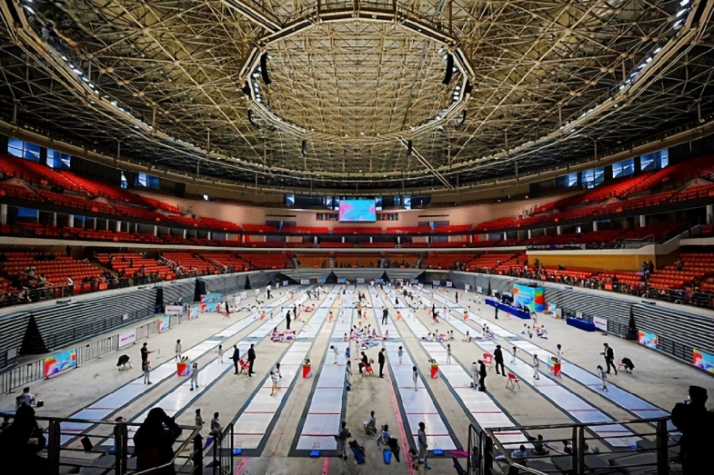 11月8日,2025年湖北省击剑公开赛在武汉体育中心正式启幕。作为华中地区规模顶尖的击剑盛会,本次赛事吸引了湖北、湖南、河南、福建等多地1500余名击剑爱好者同台竞技,覆盖U6至U16全年龄段,设置花剑、重剑、佩剑三大剑种的个人赛与团体赛,为广大剑客搭建起切磋技艺、绽放风采的专业舞台。大赛现场本次赛事由中国击剑协会
