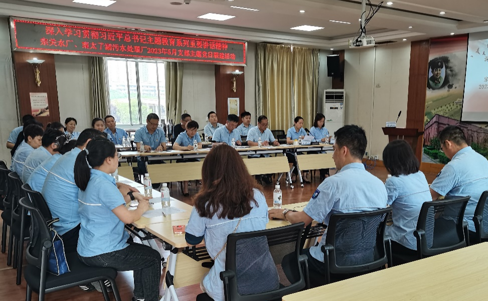 为深入贯彻落实党的二十大精神,推进全面从严治党,提高党员的思想觉悟和组织纪律性,5月18日,武汉三镇实业控股股份有限公司旗下的武汉市宗关水厂、武汉市南太子湖污水处理厂党支部开展了主题党日联建活动。活动现场本次会议由宗关水厂机关党支部书记徐红英主持,以“深入学习贯彻党和国家领导人主题教育系列重要讲话精神”