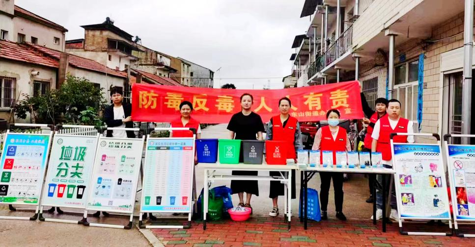 据悉,武汉市东西湖区东山街道东风社区是一个以农作物种植、鱼类养殖为主的社区,地域面积宽广,区域内种植户、养殖户较多,农业打工人员跨地区流动较为频繁。为提高社区居民的垃圾分类、禁毒防毒意识,进一步打造美丽村湾、无毒村湾,5月17日,武汉市东西湖区东山街道城市管理所联手环卫、禁毒及社区等部门的志愿者,在东山