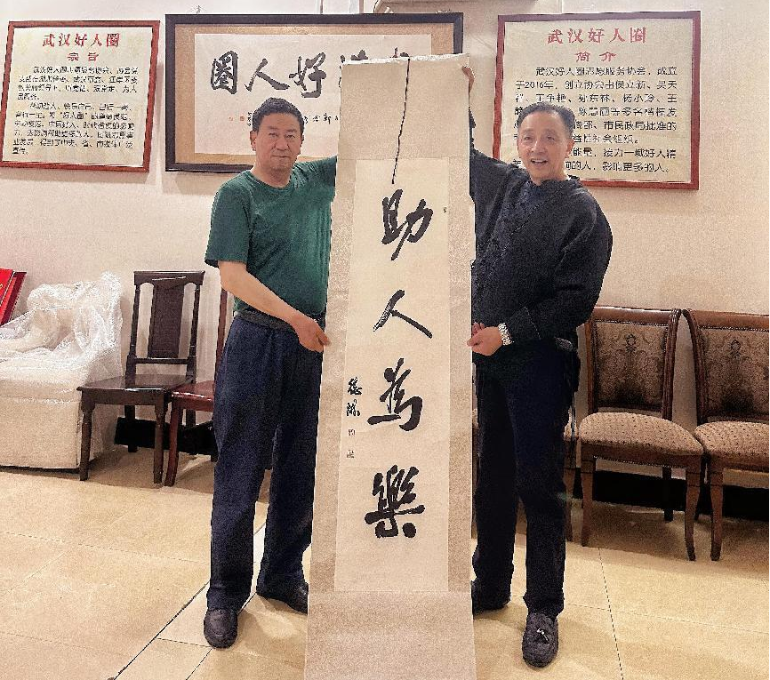 5月17日,武汉好人圈志愿服务协会(以下简称“武汉好人圈协会”)会长侯立新邀请甘肃大漠紫光生物科技有限公司董事长柴在军一行参观武汉好人圈协会,走进“武汉好人馆”,并开展座谈会。侯立新带领柴在军参观座谈会上侯立新表达了对柴在军的欢迎,再次感谢了甘肃大漠紫光生物科技有限公司在2020年武汉疫情最艰难的期间所赠送