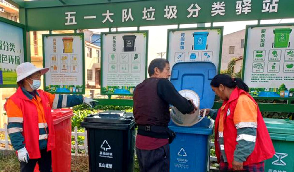 5月18日,在武汉市东西湖区东山街五一大队5个垃圾分类驿站,15名身着红马甲的环卫志愿者督导员准时“上岗”,现场帮助大队农户进行垃圾分类投放,使垃圾分类进一步专业化、精细化,引领村湾农户垃圾分类新时尚。“王爹爹,您家中的垃圾我们帮您检查分类一下,以后您可以自己在家中进行垃圾分类,再将分好的垃圾扔到垃圾驿站