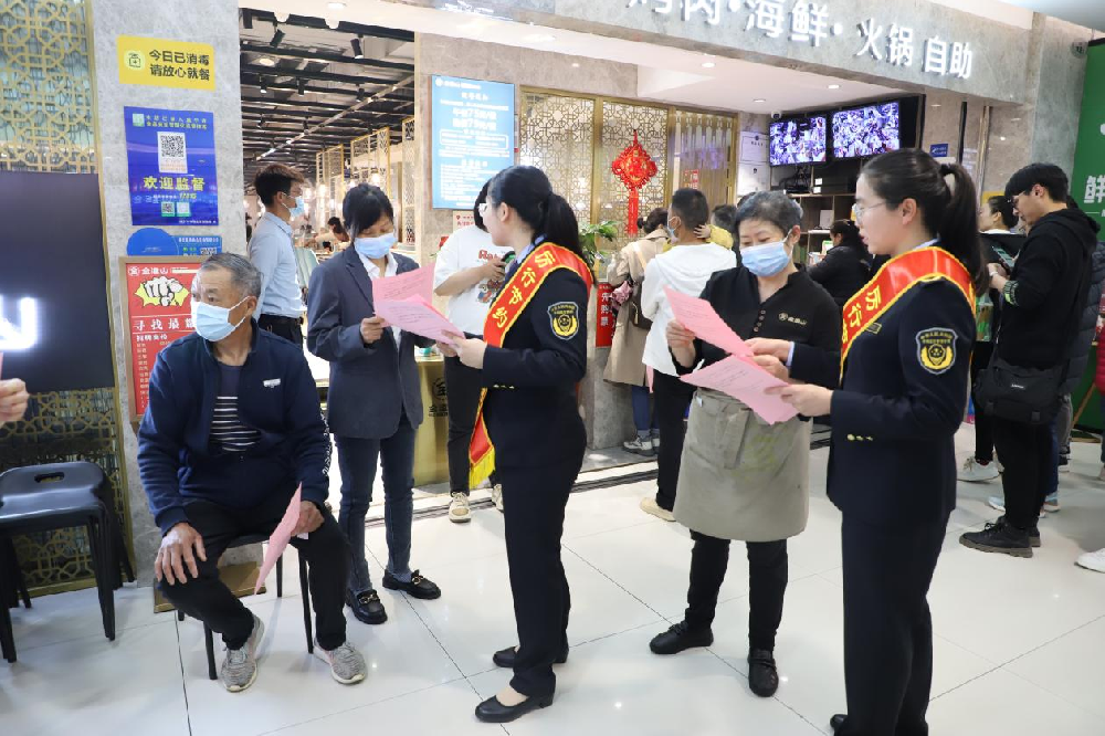 “你好,请在向消费者推荐菜品时引导消费者适量点餐,不要造成浪费。”4月6日下午,咸宁市咸安区市场监督管理局执法人员在万达广场四楼餐饮区发放《厉行节约,反对浪费倡议书》,正式拉开了咸安区为期三个月的制止餐饮浪费专项整治行动的序幕。活动现场为进一步制止餐饮浪费行为,营造“厉行节约、反对浪费”的社会新风尚,