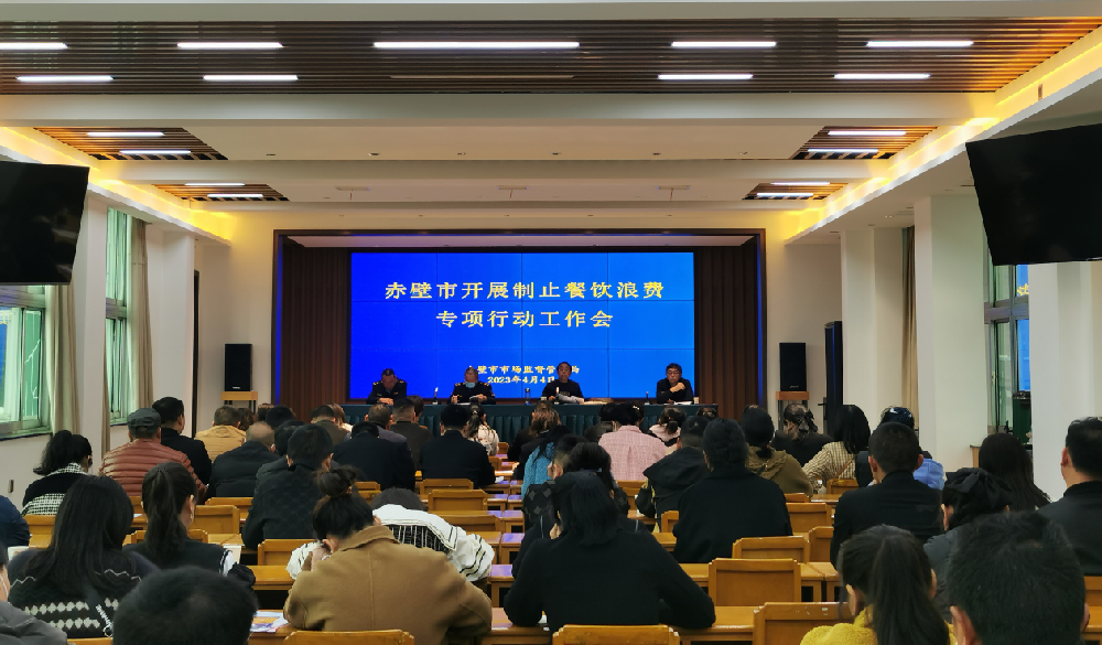为全面推行《中华人民共和国反食品浪费法》的实施,营造勤俭节约、拒绝餐饮浪费的良好社会风尚,4月4日下午,赤壁市市场监督管理局组织召开了制止餐饮浪费专项整治工作会。赤壁市市场监管局分管负责人、相关股室、各市场监督管理所负责人及赤壁市大中型餐饮单位、快餐店、单位食堂、农庄代表共110余人参加会议。会议现场会议