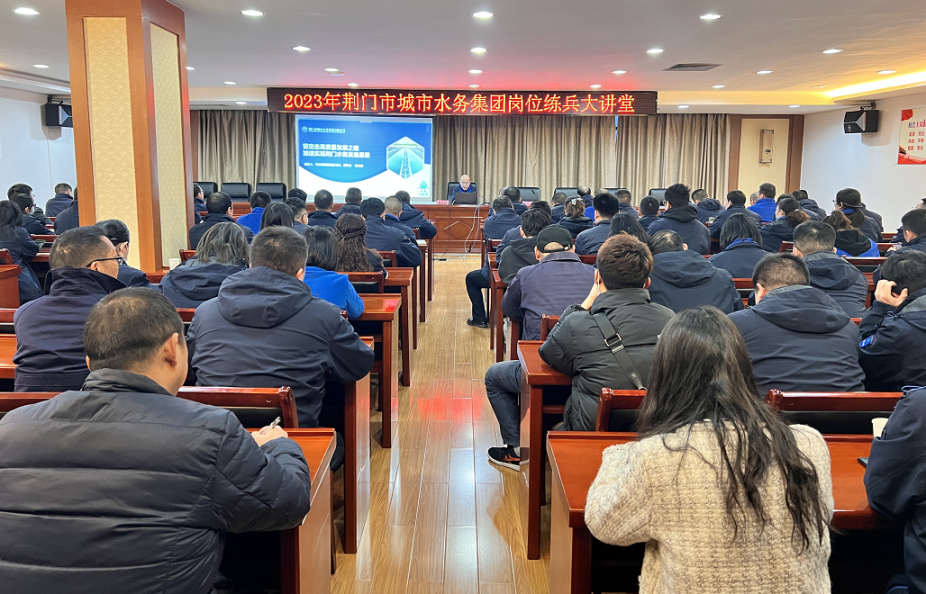 为进一步统一思想认识,贯彻落实新发展理念,推动高质量发展进程,3月17日晚,荆门市城市水务集团有限公司(以下简称“荆门市水务集团”)组织开展“岗位练兵大讲堂”活动。大讲堂现场荆门市水务集团党委书记、董事长陈永根以《坚定走高质量发展之路 加速实现荆门水务发展愿景》为主题,为全体干部职工带来了一场精彩的授课