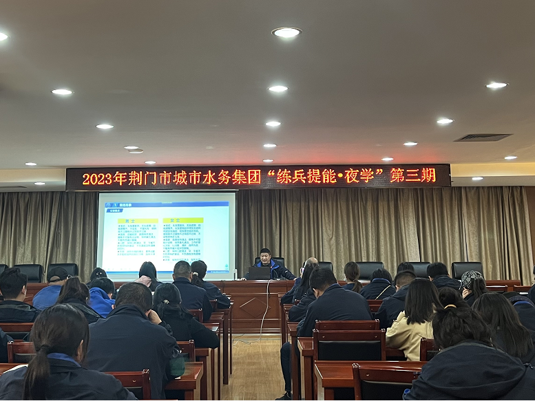 3月9日晚,荆门市城市水务集团有限公司(以下简称“荆门市水务集团”)“练兵提能·夜学”第三期会议如期而至。收费中心围绕“理论结合实际,助推职业规范化”主题,为参会人员讲述服务礼仪和心理健康等知识,内容切合实际,深受员工欢迎。会议现场会上,授课老师以案例导入,分别从“个人形象”“接待礼仪”“语言艺术”三