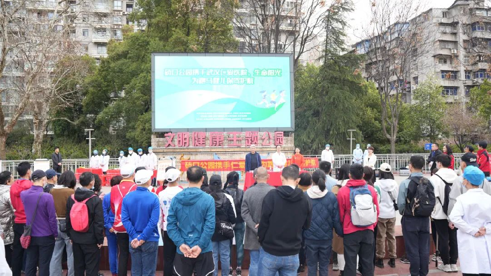 参会跑友齐唱国歌为确保2023年武汉马拉松赛事顺利展开,进一步普及和提高大众跑者的应急救援知识,3月12日,硚口公园携手武汉仁爱医院、武汉市武昌区生命阳光公益救援中心组织了约跑社、武汉市蔡甸区路跑协会、阳光跑团等12支跑友团进行赛前应急救护培训。活动主办方硚口公园主任柯尊东作活动宣讲此次活动主办方硚口公园主任