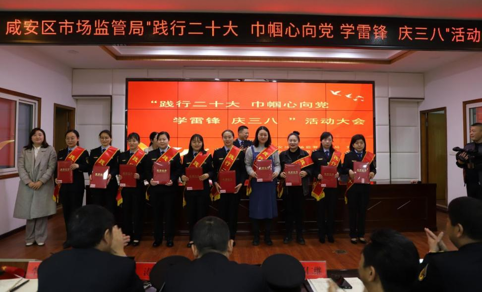 “以奋斗之笔,绘青春之梦”“用初心印证初心,用担当践行使命”“关心贫困女职工,为一线女职工送慰问,维护为女职工生育等权益”……3月8日,咸宁市咸安区市场监督管理局举行“践行二十大 巾帼心向党 学雷锋 庆三八”活动,120名女职工聚集一堂,谈思想,作交流,下一线,体验不一样的“三八节”。颁奖现场活动中,咸安区