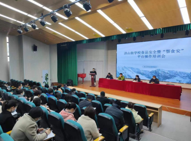 为有序推动“湖北食品安全智慧化监管平台”(以下简称“鄂食安平台”)使用,深化推进“两个责任”落地见效,进一步做好学校食品安全工作,发挥学校和监管部门的统筹效应,2月28日上午,武汉市洪山区市场监管局洪山市场监管所在洪山区第一小学书城路分校报告厅,开展洪山街学校食品安全暨“鄂食安”平台操作培训会。会议现场