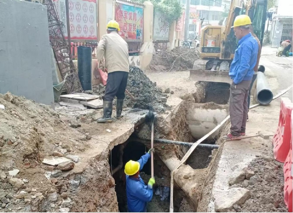 10月28日上午6时30分,湖北省大悟县老旧城区污水管网城关镇幸福巷片区改造项目正在施工,施工人员针对现场出现的问题进行研究讨论,采取快捷高效的方法解决施工问题,推进污水管网改造项目建设早日完工。该项目于今年9月初开始动工,施工过程中大悟县住建局采取有效措施,配合相关部门,尽量减少对周边居民出行造成的影响。
