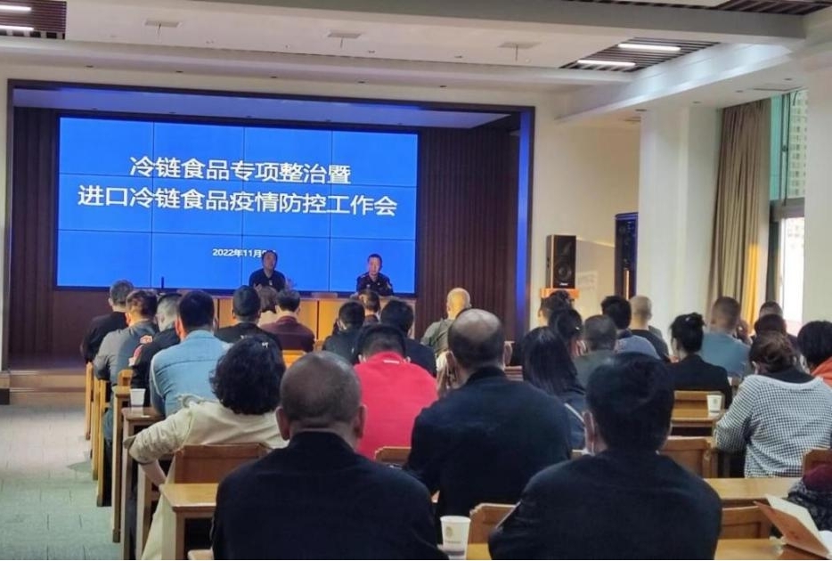 为进一步加强冷链食品安全监管,严防进口冷链食品输入性风险。近日,湖北省赤壁市市场监督管理局(以下简称“赤壁市市场监管局”)组织召开冷链食品安全监管暨疫情防控工作会,赤壁市相关食品生产经营企业,商场超市的冷库、冷链运输企业和各市场监管所所长等60余人参加。会议现场会上,赤壁市市场监管局党组成员龚承员传达