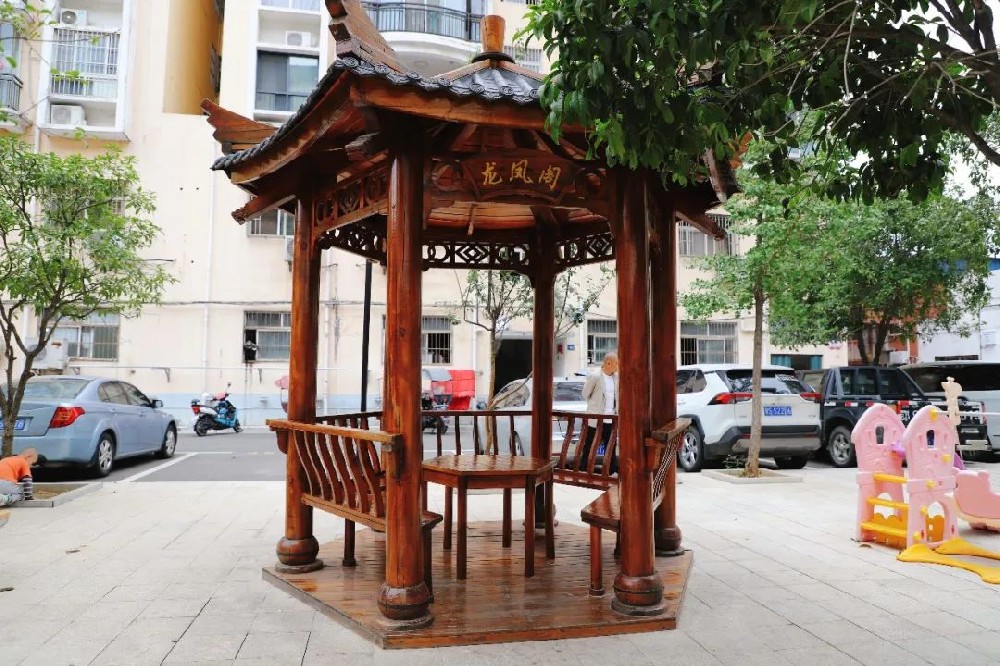 走进湖北省随州市曾都区南郊街道瓜园社区湖滨小区,只见来回车辆在电动停车杆下有序进出,外立墙面红白相间,草木齐整,小区入口设计得清新雅致……改造后的小区凉亭湖滨小区位于曾都区南郊街道瓜园社区一组,建成于2000年以前,共有78户居民,常住人口267人。改造前,小区存在地面破损严重、无监控设施、景观效果差、休闲区