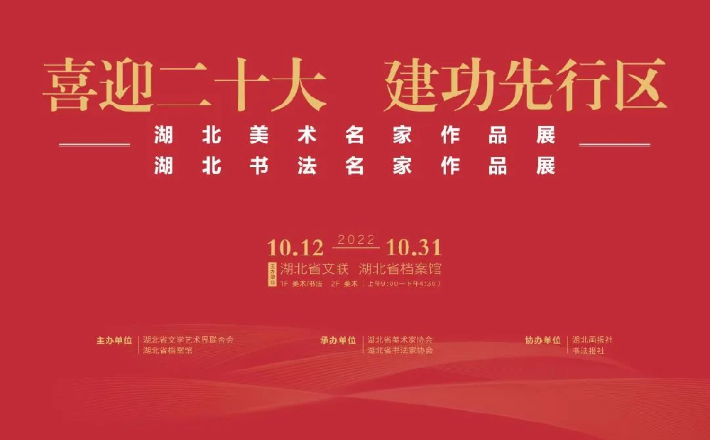 党的二十大即将胜利召开之际,在认真学习贯彻湖北省第十二次党代会精神,建设全国构建新发展格局先行区的重要时刻,由湖北省文学艺术界联合会(以下简称“湖北省文联”)、湖北省档案馆主办,湖北省美术家协会(以下简称“湖北省美协”)、湖北画报社承办的“喜迎二十大 建功先行区”湖北美术名家作品展览于10月12日上午,在