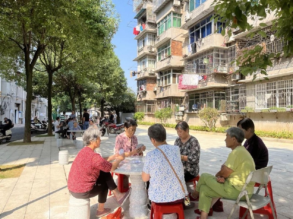 笔直的柏油路通向小区深处,活动广场整洁宽敞,10月12日上午,湖北省地质局第五探矿大队家属区的居民们正围坐在新修的石凳、石桌旁休闲娱乐。黄石市下陆区团城山街道马鞍山社区网格员占亚强的到来吸引了他们的注意。居民们正在休闲娱乐“之前说好乒乓球台怎么没建”“我家门口雨水倒流的问题还没有解决”……看到社区工作人