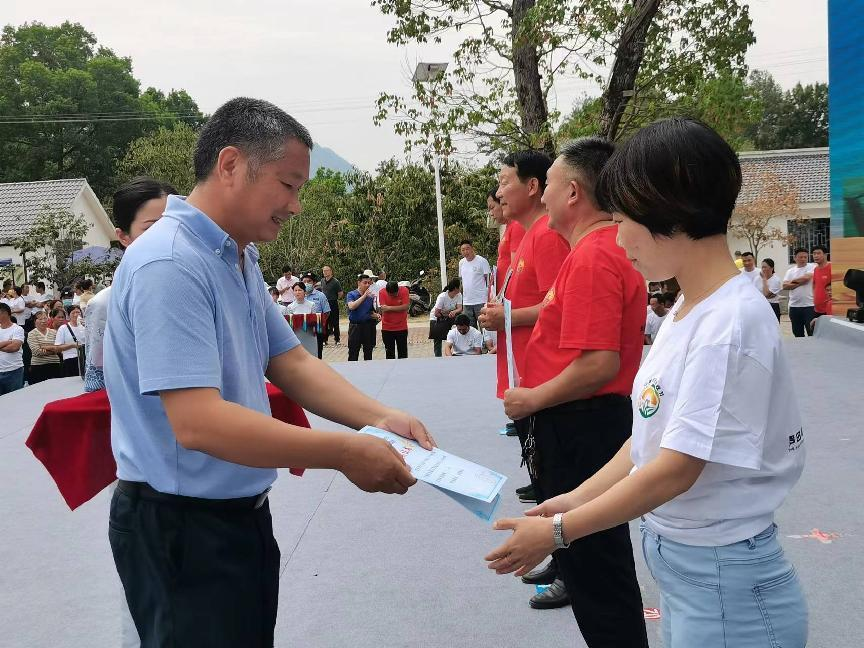 9月23日,“欢乐庆丰收、喜迎二十大”湖北省罗田县2022年中国农民丰收节暨河铺镇首届农民运动会在该县林家咀村举行,乡村田野里处处欢声笑语,喜气洋洋。活动现场此次农民运动会共设打草葽子、两人三足 、扁担挑萝卜竞速接力、同心锯木、抢种抢收、沙滩犁田六个比赛项目和大众河田摸鱼、拔河比赛两个体验项目,河铺镇40个村