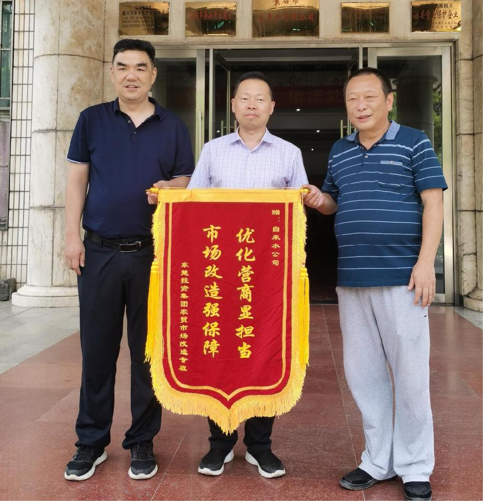 “感谢自来水公司及时为我们市场装好水表,我们新市场才能按时开业。”7月28日上午,黄石市东楚投资集团农贸市场改造专班将“优化营商显担当 市场改造强保障”锦旗送到黄石市自来水有限公司,感谢该公司的“及时水”化解了农贸市场的“乔迁忧”。黄石市东楚投资集团农贸市场改造专班送来锦旗原来,7月6日,黄石市东楚投资集
