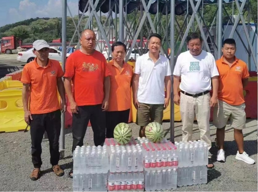 入伏以来,热浪滚滚。8月1日,麻城天景山漂流景区向木子店镇高速口、向明河高速口、长岭关疫情防控卡口分别送去12箱矿泉水和2个西瓜。活动现场“你好,请配合一下工作。”连日来,麻城市持续高温,坚守在疫情防控卡口的一线工作人员一边接受着高温炎热的“烤验”,一边耐心细致地检查过往车辆,为全力守好麻城“外防输入”的