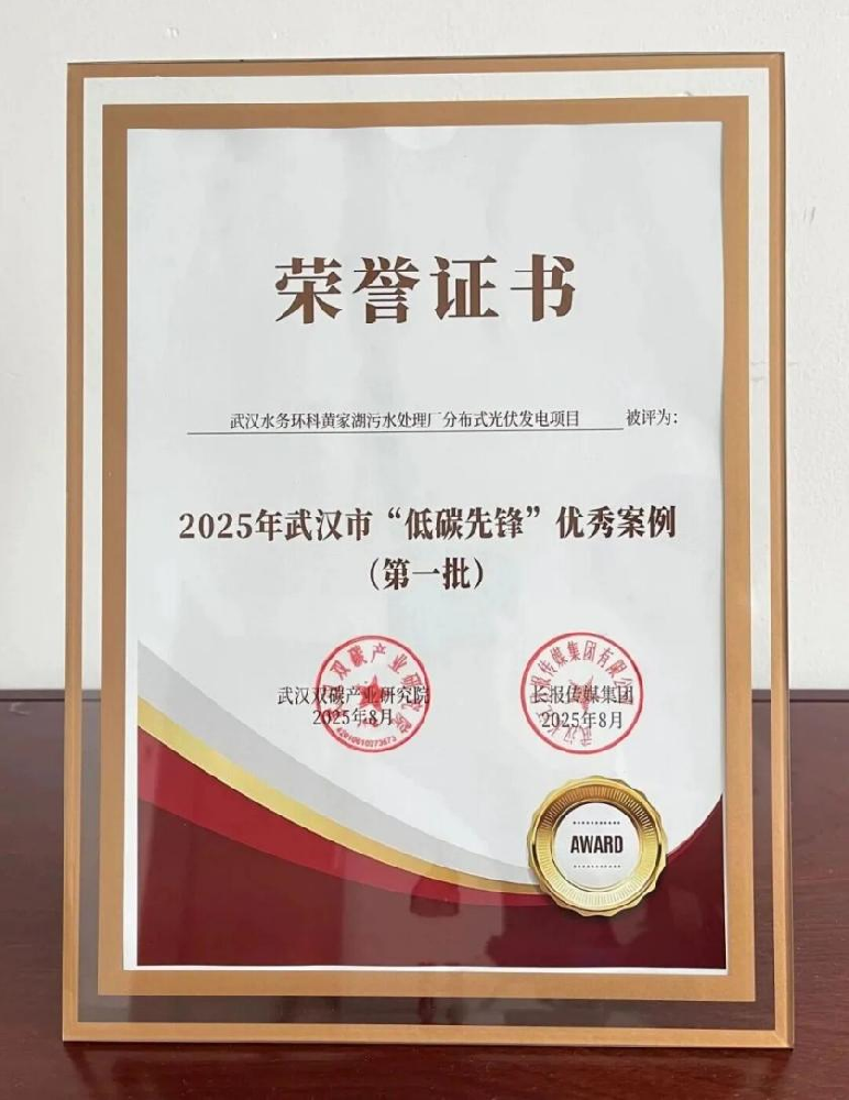 近日,由武汉双碳产业研究院携手长江日报社联合发起的“低碳先锋”优秀案例征集活动公布结果,武汉控股水务环境公司的黄家湖污水处理厂“光伏+治污”项目凭借创新模式与显著减排成效脱颖而出,成功入选2025年首批武汉市“低碳先锋”优秀案例。作为长江经济带重要的水资源承载地,武汉近年来以“双碳”目标为引领,通过政策引
