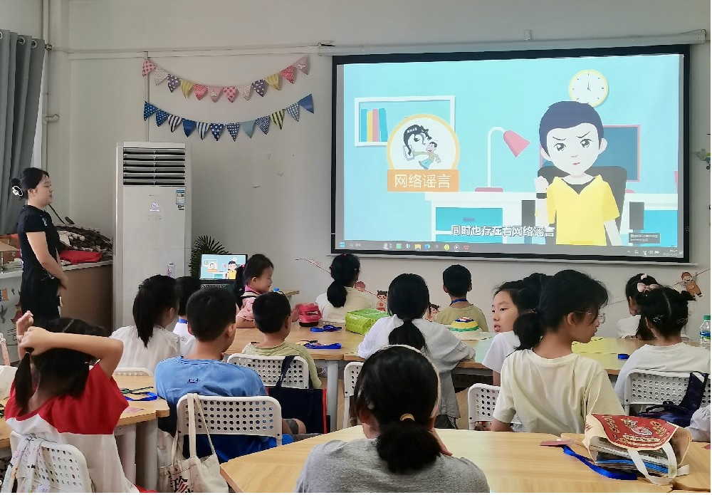 为引导青少年文明安全上网,7月25日,武汉市东湖高新区龙泉街道新时代文明实践所联合腾龙社区新时代文明实践站,在暑期班开展“武汉以我为荣,文明上网”主题活动,通过网络安全讲座和互动讨论,提升青少年网络素养。活动现场活动伊始,社区工作人员为青少年带来一场具有实用性的网络安全知识讲座。工作人员结合青少年上网特