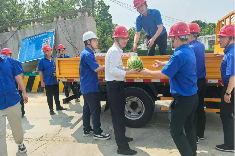 近期,荆门市处于持续高温天气,最高气温突破37℃,给仍在一线工作的员工带来严峻考验。为切实做好高温天气下的防暑降温工作,保障一线员工身心健康,7月8日,荆门市城市水务集团有限公司(以下简称“荆门水务集团”)组织开展“夏日送清凉”慰问活动。活动现场荆门水务集团党委书记、董事长陈永根带队分别前往二水厂、城南