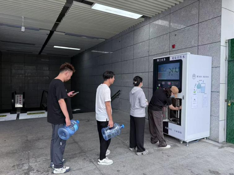 为持续提升市民生活品质,荆门市城市水务集团(以下简称“荆门水务集团”)创新推出“智慧直饮水站”。6月23日,该水站首批试点站点已在荆门市中天街遇见地铁口投入使用,未来还将逐步覆盖各个社区,让市民享受“指尖办业务、下楼取好水”的便捷生活。市民在“智慧直饮水站”排队取水健康直饮 现取现喝更安心“家门口就可取