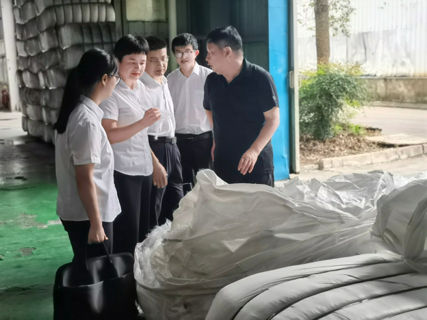 6月26日,湖北省云梦县人民法院党组书记、院长刘真华一行,深入云梦佳汇化纤有限公司开展走访调研活动。调研现场刘真华一行实地参观了该公司的化纤产品生产线,近距离了解生产工艺流程,询问企业生产经营状况、市场前景和发展面临的机遇与挑战,感受企业发展脉搏。调研现场随后,调研团队与企业负责人进行了面对面的座谈交流