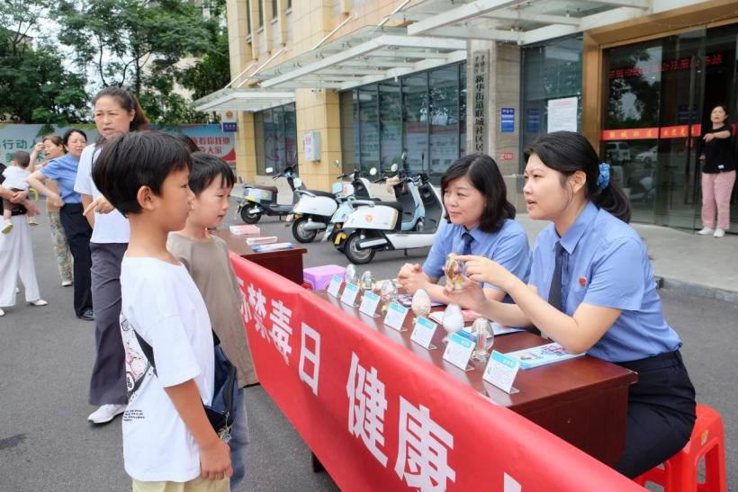 在第38个“6·26”国际禁毒日来临之际,孝感市孝南区人民检察院部分干警前往新华街道联城社区开展禁毒普法宣传活动,切实提升人民群众特别是青少年防范涉麻精药品等成瘾性物质滥用的意识,筑牢全民禁毒防线。活动现场活动现场,检察干警通过摆放禁毒知识展板、发放禁毒宣传手册等方式,用通俗易懂的语言向群众和学生详细讲解