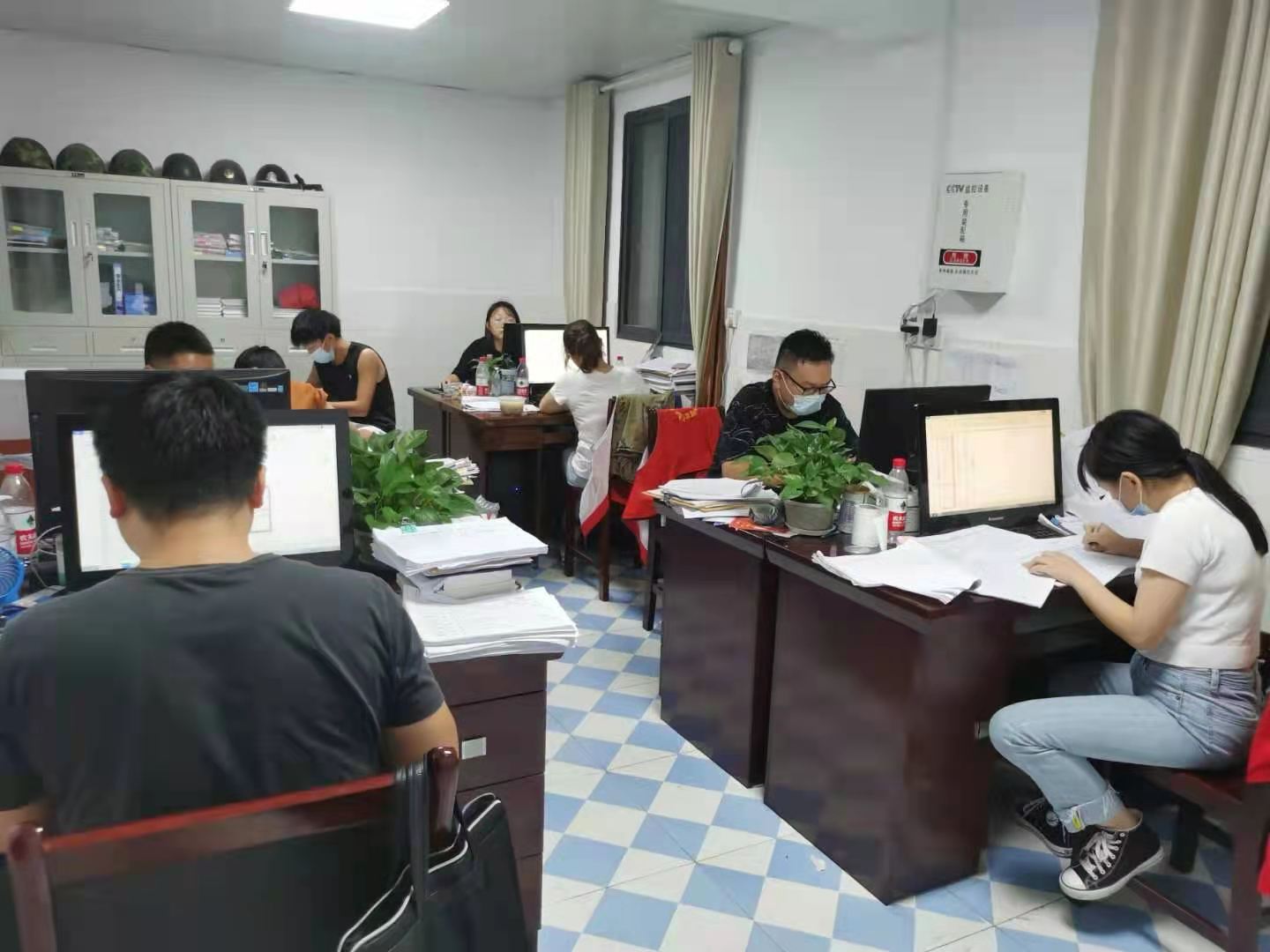 8月10日,应山街道社区工作者连夜加班整理下沉党员入户排查清零情况。