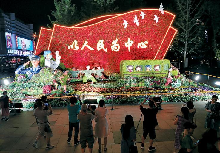 东自建国门、西至复兴门之间的长安街上,为迎接建党百年所设置的10组立体花坛一经亮相,就成为热门“打卡地”,吸引了不少市民观赏、留影。8种花卉首次使用细长的绿色花枝,向外反卷着的酒红色花瓣,形似百合花其实却不是。“这是今年首次应用在花坛中的花卉品种之一,叫做夏日酒红,是萱草的一种。”北京市花木有限公司副总
